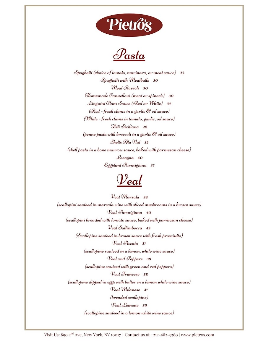 Scalloppine sautéed in white wine, lemon, butter sauce, sliced mushrooms